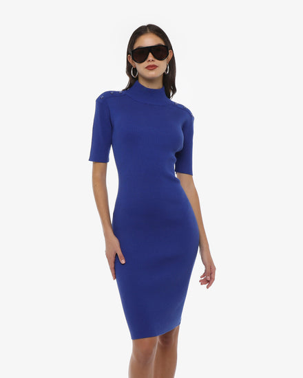 Knit mini dress, enriched with bright stone decorations. A chic and original piece, perfect for adding a touch of glamour to your evenings.