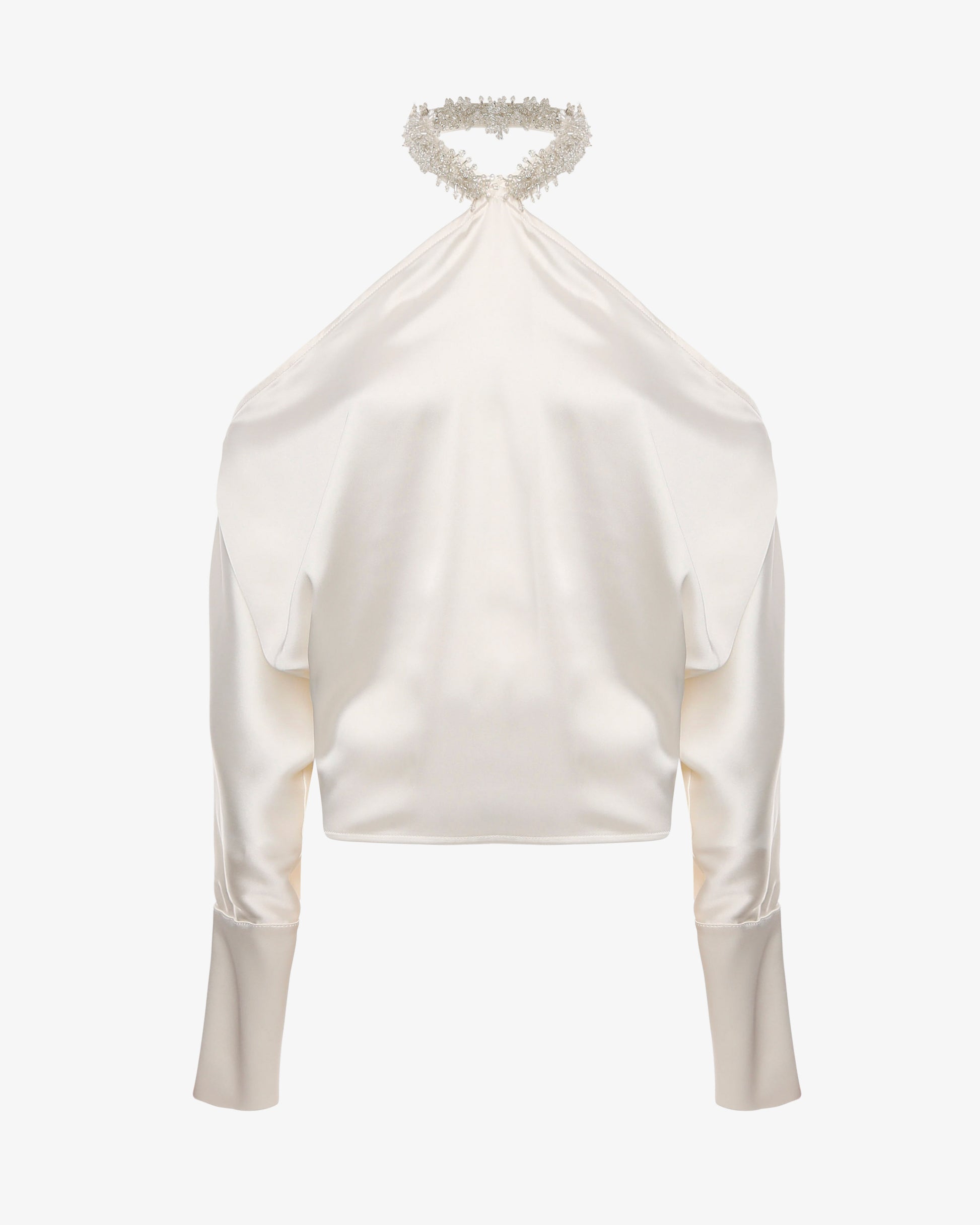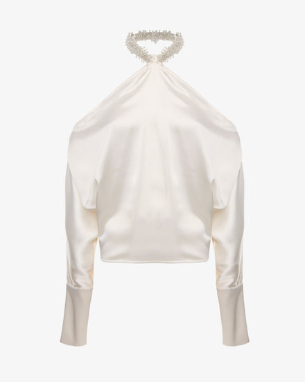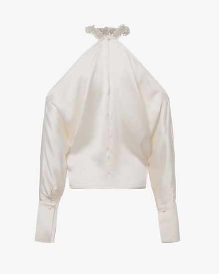 Blusa in satin con dettaglio gioiello e spalle scoperte